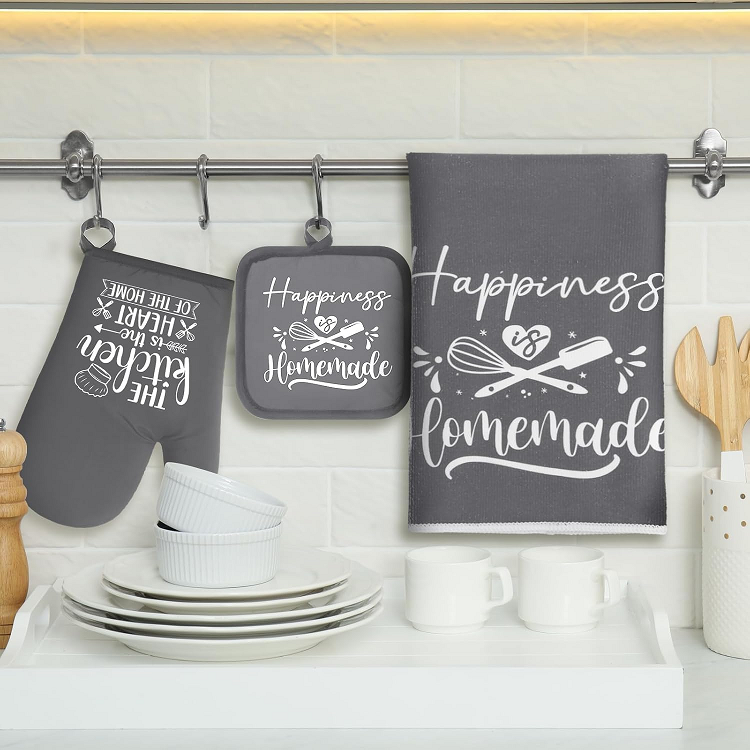 Pieces Included: 1 Kitchen Towel, 1 Oven Mitt, 1 Pot Holder