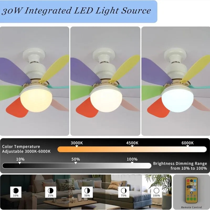 The user-friendly remote control gives you precise control over 3 wind speeds, and a sleep timer (1/2/4h).Ceiling fan with color-changing light (3000-6500K ), dimmable from 10%-100%.
