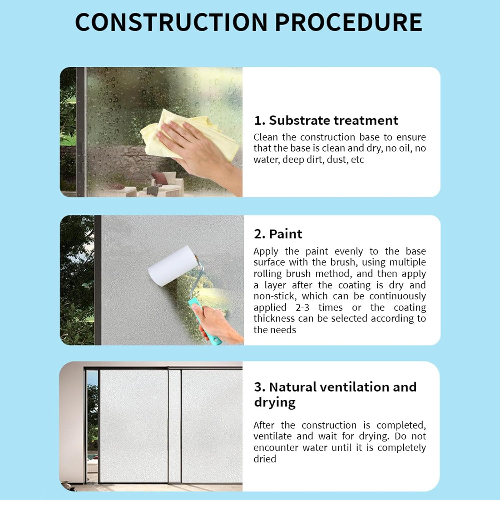 - WIDE APPLICATION Enhance the look of your space with our frosted glass paint that adds sophistication to any room. Suitable for various outdoor uses, including bathroom windows, shower doors, etc. Ideal for enhancing decorative effects and creating privacy
