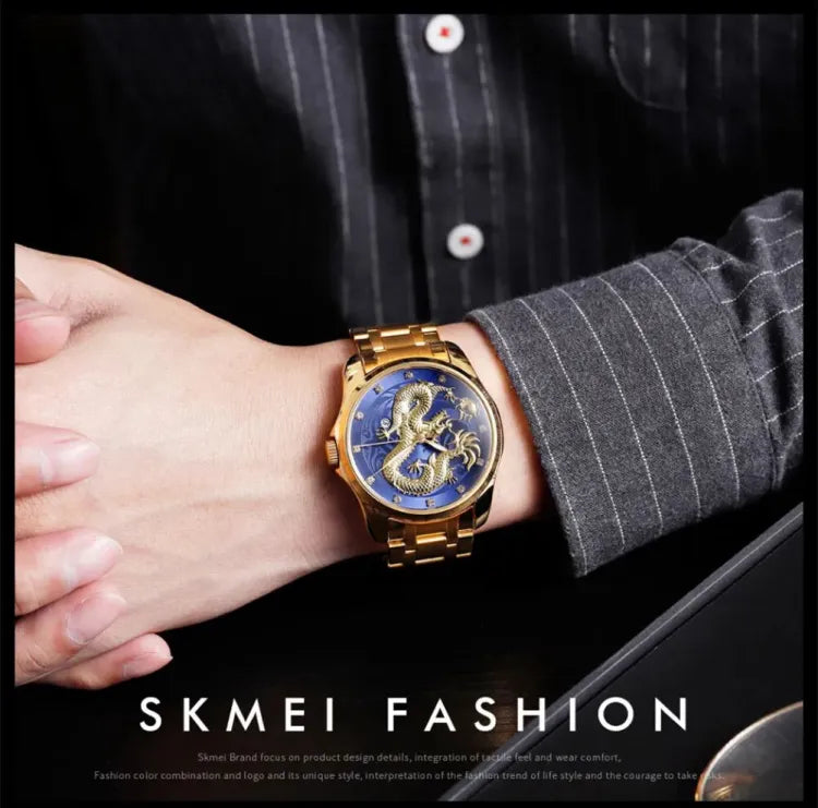 Product details of SKMEI 9193 Gold Dragon Quartz Luxury Stainless Steel Alloy Business Waterproof Wristwatches For Men