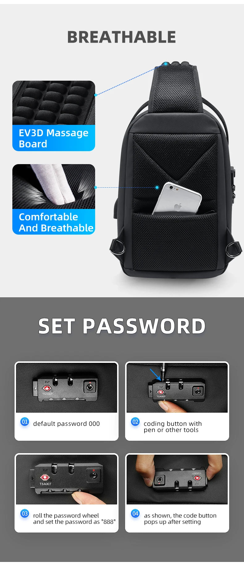 Men's Crossbody Sling Bag – Oxford Fabric, USB Charging, Anti-Theft Design