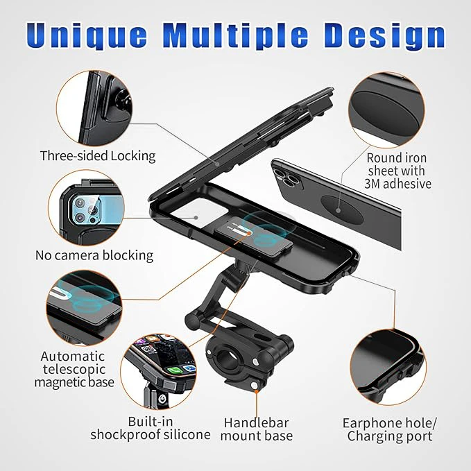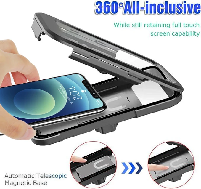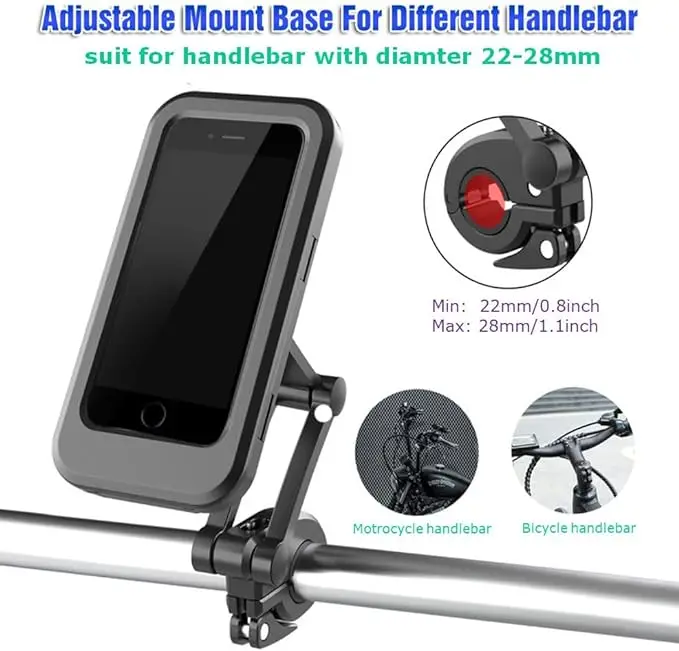 2【High Sensitive Touchscreen】The touchscreen works perfectly when operating your mobile phone without taking it out. Moreover, on the back of the bike phone holder, there is a clear section for your mobile phone camera, so you can take photos anytime during your bike travelling.